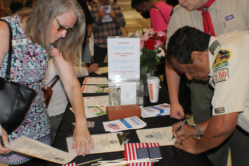 On November 25th, 2019, Foundation Forward, Inc. made a presentation to the County Commissioners in Elmore County, AL. The Board took the matter into consideration and voted to accept the Charters of Freedom setting. The setting would consist of The Declaration of Independence, The United States Constitution, and The Bill of Rights, along with adjacent pedestals for recognition plaques and an area of engravable brick pavers.